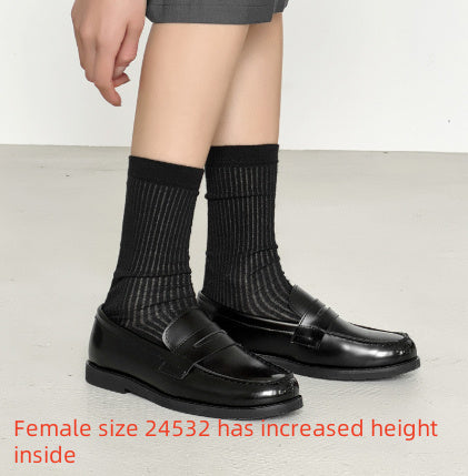 These Men's Classic Slip-on Black Derby Couple Leather Shoes combine timeless style with practical comfort. Crafted with durable rubber soles and soft microfiber linings, they offer excellent grip and breathability for all-day wear. Designed with a mature aesthetic, the shoes feature height-increasing insoles available in both male and female sizes, enhancing stature discreetly. The microfiber upper ensures a sleek, polished look while maintaining flexibility. Available in a wide range of sizes from 36 to 46, this versatile pair is perfect for those seeking sophistication paired with functional design. Ideal for formal occasions or daily use, these shoes deliver enduring quality and refined style.
