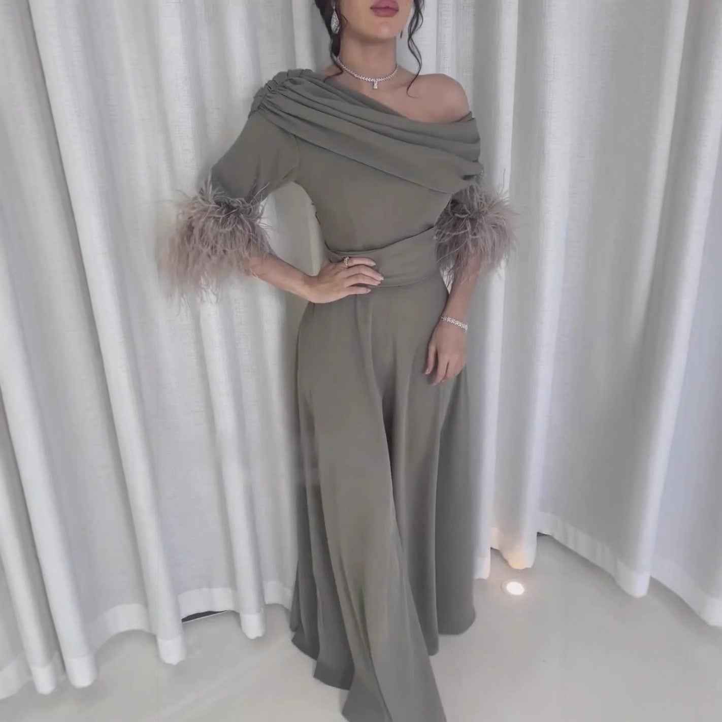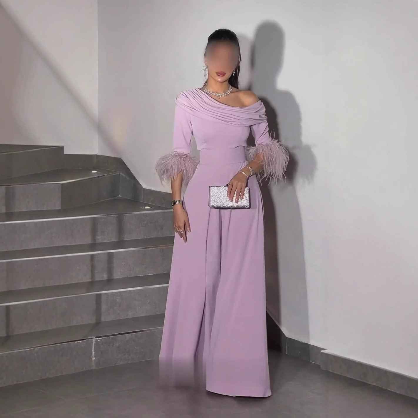 Sexy Feather Jumpsuit with Fashionable Feather Stitching