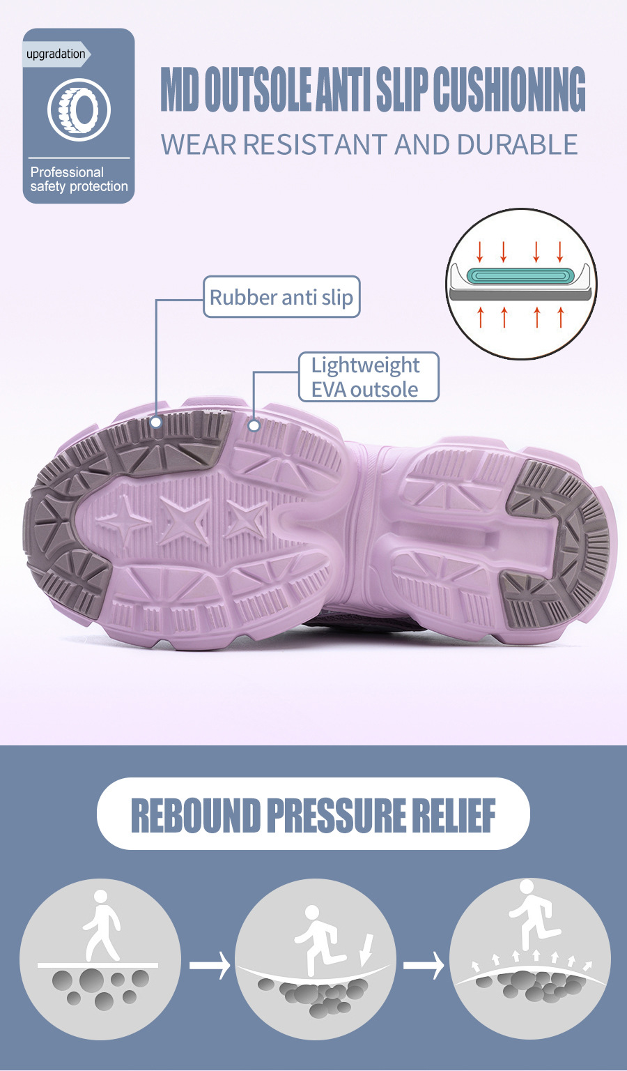 Women's Work Shoes Flying Woven Work Shoes Attack Shield And Anti-stab Pink - D&A